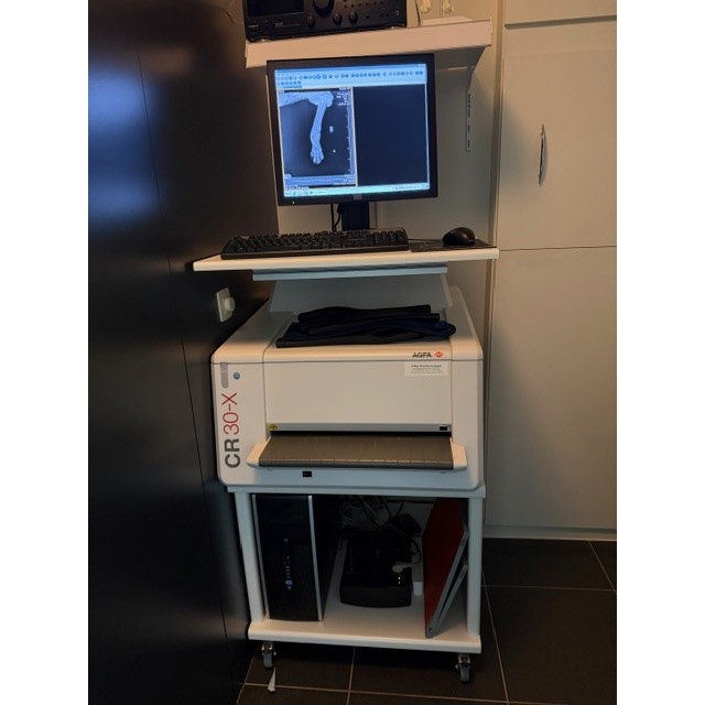 Digitaal RX toestel, tafel en toebehoren (kleine en grote plaat, 1 Rx schort, 1 paar Rx handschoenen en 1 schildklierbeschermer)